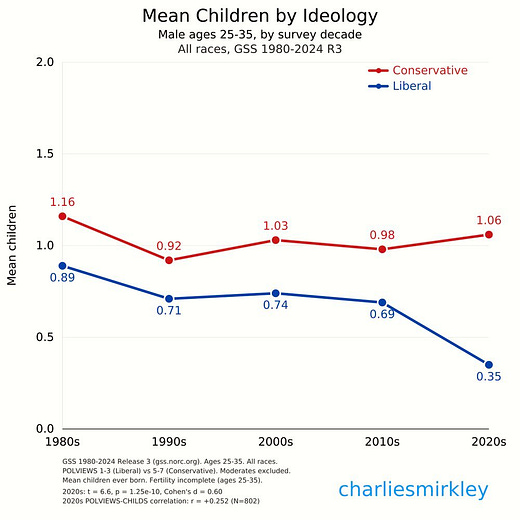 Nabízí se otázka: když konvertujeme Evropu na křesťanství, uvidíme hned výsledky a nebudeme vymírat? Dle velké studie z Nizozemska závisí hlavně na prostředí lidí, nikoli soukromém pocitu, jak je pro ně víra důležitá. Lidé, kteří byli vychování v nábožné rodině a později víru opustili, mají jen trochu menší šanci mít >2 děti než předchozí nábožná generace. Podobně lidé chodící do kostela týdně mají vysokou porodnost236. Ani konvertování k víře při těžké životní události nevěřícího nijak nezmírní depresivní symptomy237. To ukazuje, že náboženství člověku pomáhá hlavně tím, že ho dá do neliberální společnosti, kde je normalizované mít hodně dětí. Mezi nevěřícími se člověk, který založí rodinu brzy, může cítit jako vyvrhel, protože ostatní mladí tráví dvacetiny třeba cestováním, párty nebo kariérou.