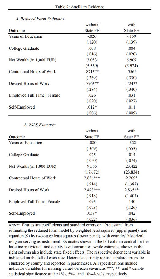 §1.2.0.1 V současném Německu je celkem jasný průnik mezi touto částí křesťanů a jak touhou více pracovat, tak reálnou dobou strávenou v práci. Ale stále je můj závěr výše pravdivý. Není zde žádný signifikantní vztah větších příjmů či být OSVČ s protestanstvím21.