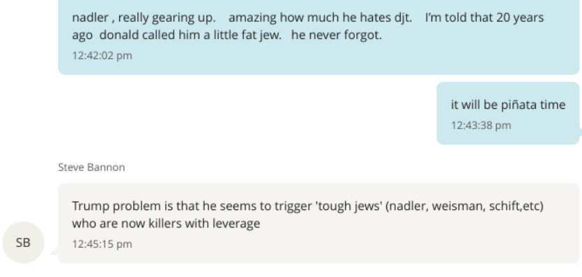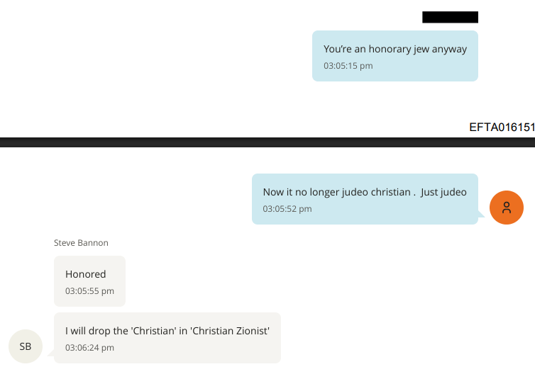 Vzhledem k tomu s kolika Židy si Bannon v chatech povídal, lze dodat i třetí bod: pro-izraelské. Epstein měl Bannona rád, a tak ho tituloval na “čestného Žida”31 :)