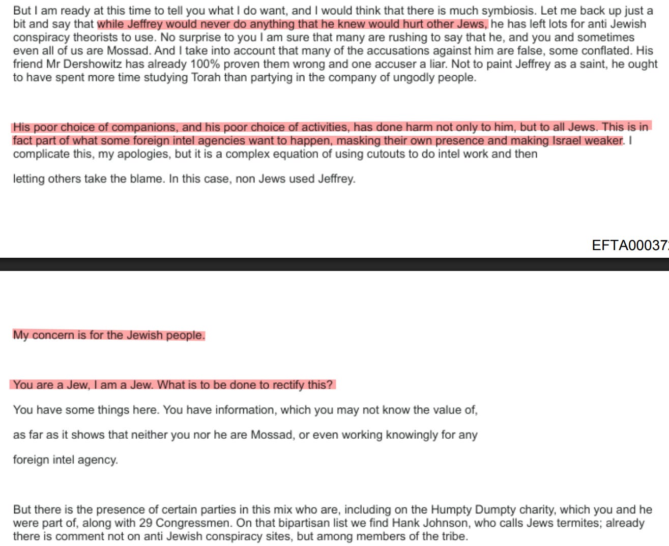 Upřímně - nepřišlo mi, že by Epstein vyváděl cokoli divokého. Žádné sociální inženýrství nebo podpora zvrácených agend ve spisech není. Jsou tam jen basic informace napsané otřesným jazykem. Dost mi to připomělo korespondenci Andreje Babiše :-)